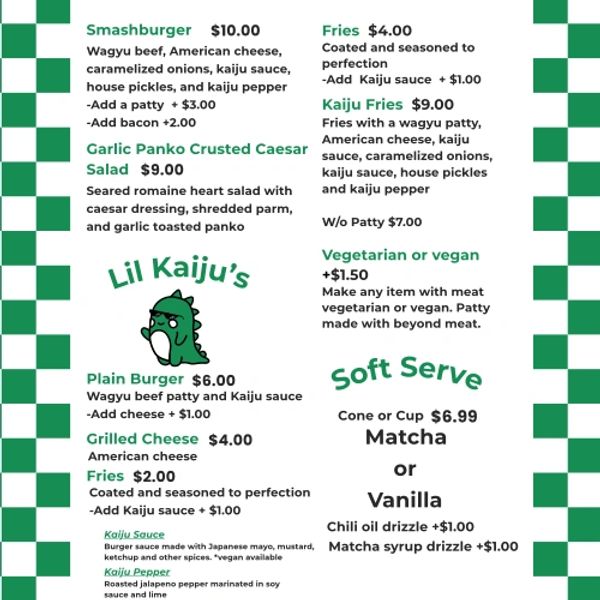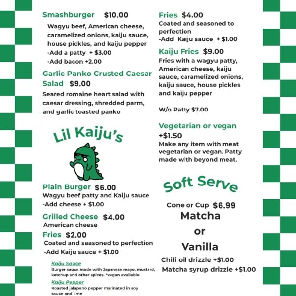 Brick and mortar coming soon. Contact Kaijuburgeraz@gmail.com for investment opportunity