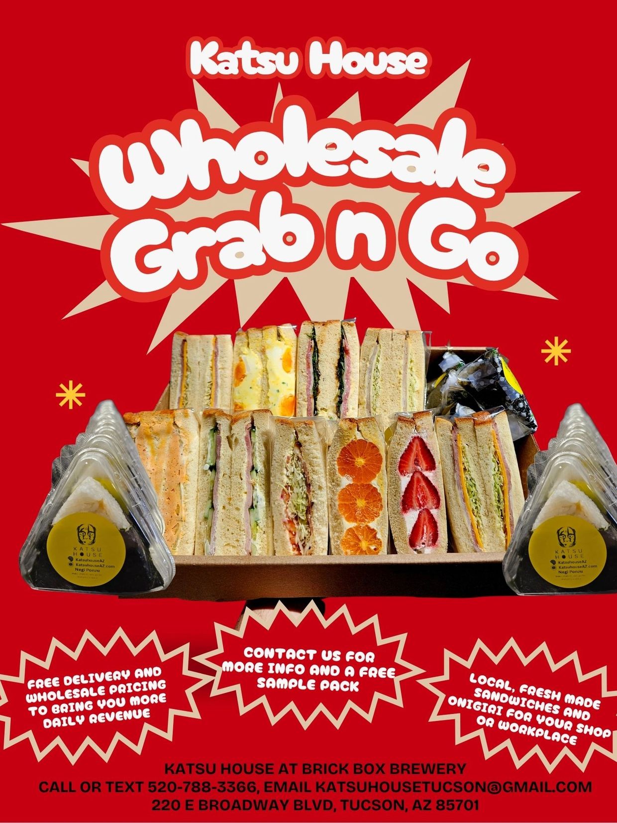 Katsu House is now opening up wholesale accounts before season hits! We offer free delivery of our sweet or savory sandwiches made with fluffy Japanese milk bread, and Onigiri (rice ball with a filling inside and wrapped in nori paper) that can either hold hot or cold! Perfect for coffee shops, markets, breweries or tap houses, or any place looking to level up their grab n' go game for their customers. Shoot us an email, call or text for a sample box and more info and lets get your no strings attached account started! Contact info on flyer above.